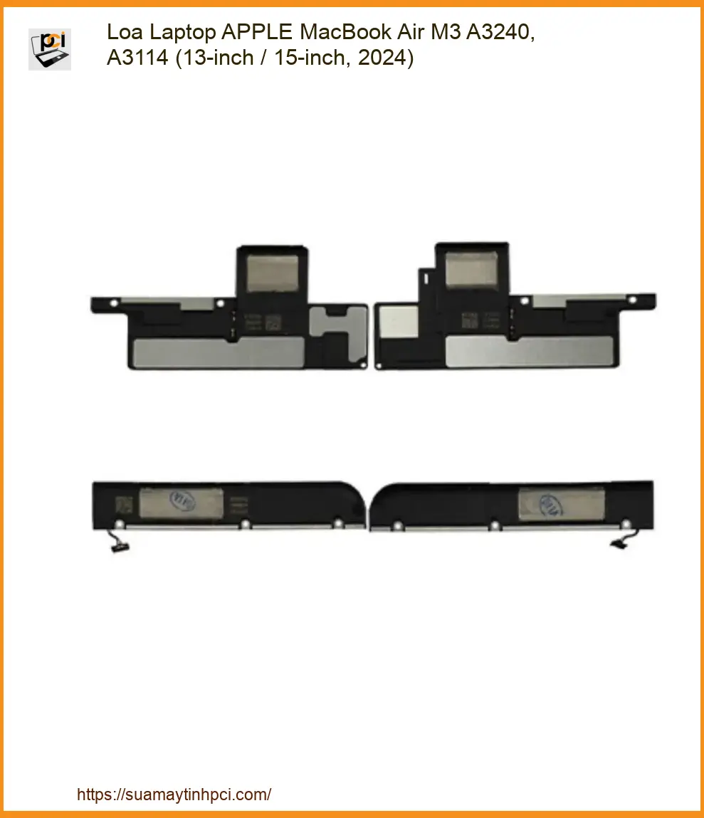 Chào mừng bạn đến với Sửa máy tính PCI – địa chỉ đáng tin cậy dành cho những tín đồ Apple đang gặp vấn đề với âm thanh. Nếu chiếc máy tính của bạn đang bị rè, mất tiếng hoặc âm thanh chập chờn, **Loa Laptop APPLE MacBook Air M3 A3240, A3114 (13-inch / 15-inch, 2024)** chính là linh kiện giải quyết dứt điểm tình trạng này.