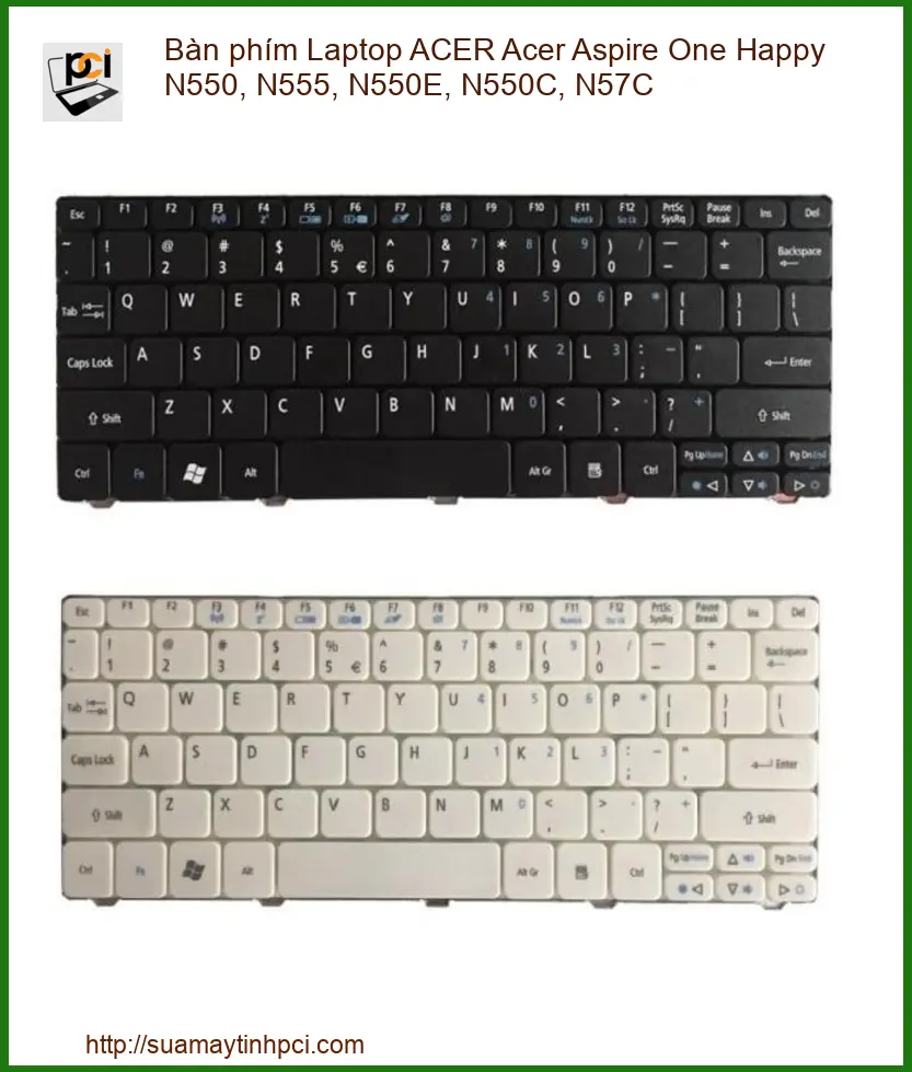 Bạn đang gặp rắc rối với chiếc laptop của mình vì bàn phím Laptop ACER Acer Aspire One Happy N550, N555, N550E, N550C, N57C bị liệt phím, chạm phím hoặc bung mạch? Đừng để sự cố nhỏ làm gián đoạn công việc hay học tập. Tại Sửa máy tính PCI, chúng tôi cung cấp giải pháp thay bàn phím nhanh chóng, uy tín và chuyên nghiệp nhất hiện nay.